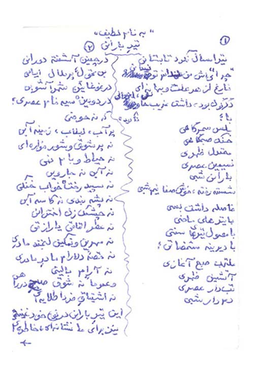 دستنوشته سروده «تیر بارانی»