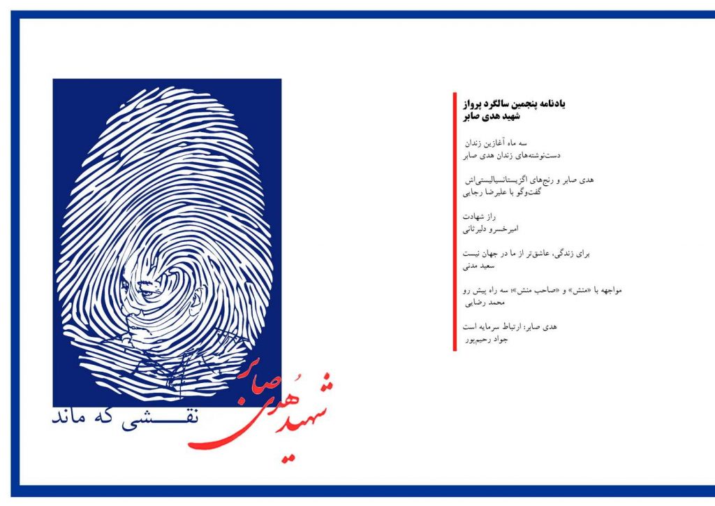 مقارن با ۲۱ خرداد یادنامه پنجمین سالگرد شهادت هدی صابر منتشر شد. در این یادنامه بخش جدیدی از دستنوشتههای زندان شهید صابر در حد فاصل مرداد تا آبان ۱۳۸۹ ذیل عنوان «سه ماه آغازین زندان» منتشر شده است. همچنین این یادنامه حاوی گفتوگویی با دکتر علیرضا رجایی با عنوان «هدی صابر و رنجهای اگزیستانسیالیستیاش» است که حاوی نکات قابل توجه و آموزندهای پیرامون منش و شخصیت هدی صابر و سیر فعالیتهای وی در مجموعهی نیروهای روشنفکری مذهبی و به ویژه پس از سال ۱۳۸۸ است. «راز شهادت» عنوان یادداشتی از امیرخسرو دلیرثانی (همراه اعتصاب غذای منجر به شهادت هدی صابر) است که در این یادنامه گنجانده شده و سوالات و ابهامات در مورد نحوهی شهادت هدی صابر طی آن مورد واکاوی قرار گرفته است. یادداشتی از دکتر سعید مدنی در تبعید با عنوان «برای زندگی، عاشقتر از ما در جهان نیست» که طی آن پس از تمهیدی نظری پیرامون موقعیت و جایگاه فعالیتهای هدی صابر و طیف همفکران، سه نقطهعطف همکاری دکتر مدنی با شهید هدی روایت شده و ضمن آن ویژگیهای هدی صابر در این فعالیتها توسط سعید مدنی احصاء شدهاند.
